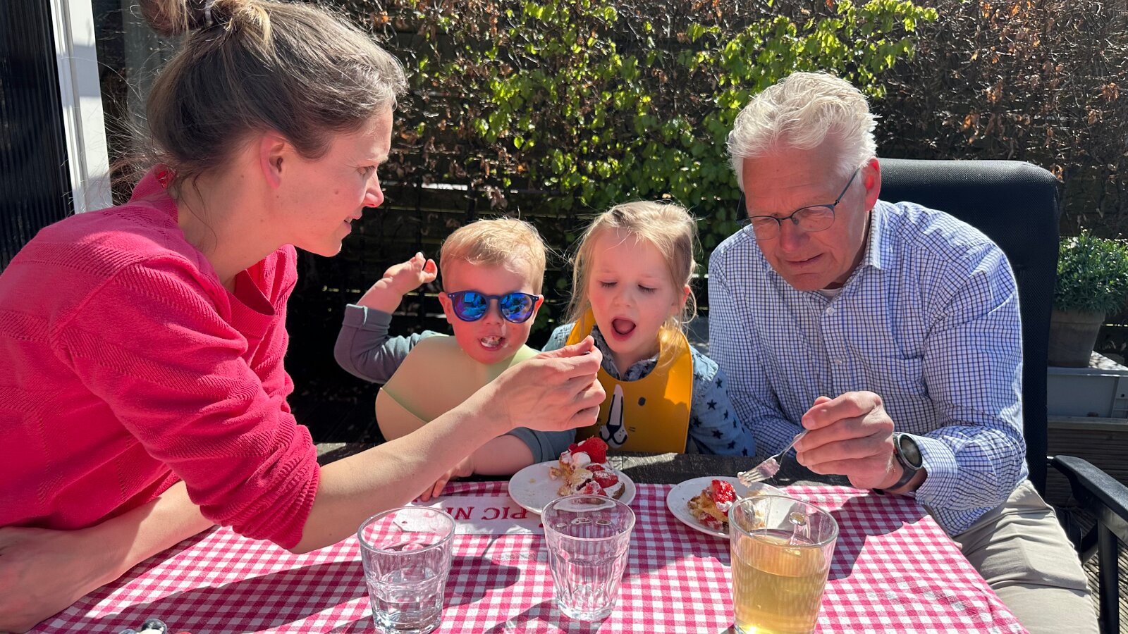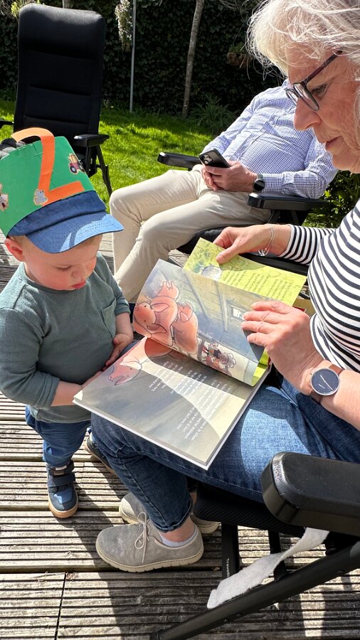 Gezellige verjaardag in de tuin met opa's en oma's